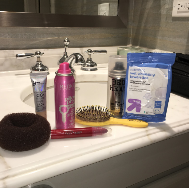 The next step is pulling out your dry shampoo. My three faves, with different price points, (insert winking emoji) are Dry Bar Detox Dry Shampoo, Redken Pillow Proof and Oribe Dry Shampoo. Each of these come in travel sizes so they can fit nicely in your bag. Take sections of hair and spray at the roots, massage into your roots and scalp, then style as normal.